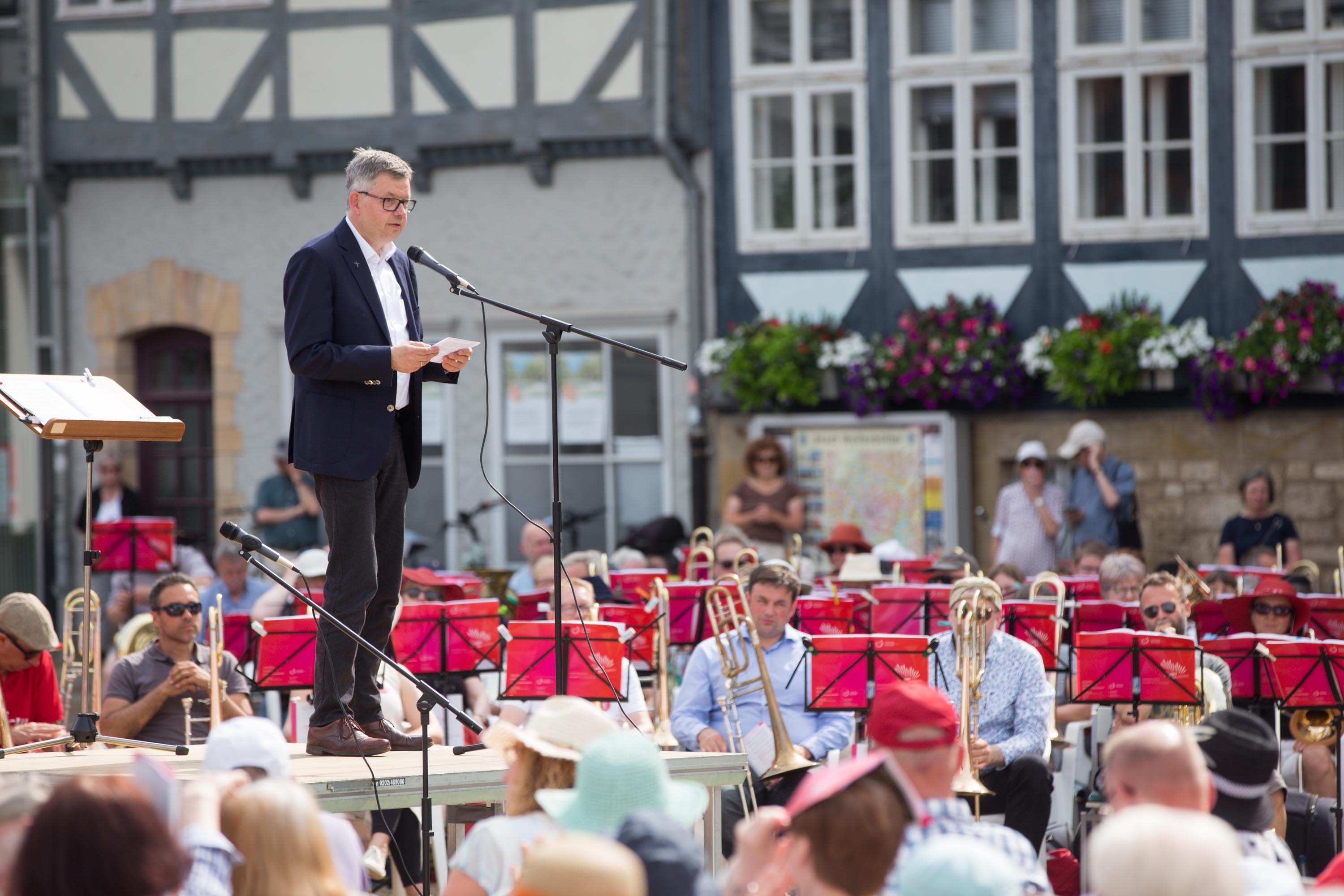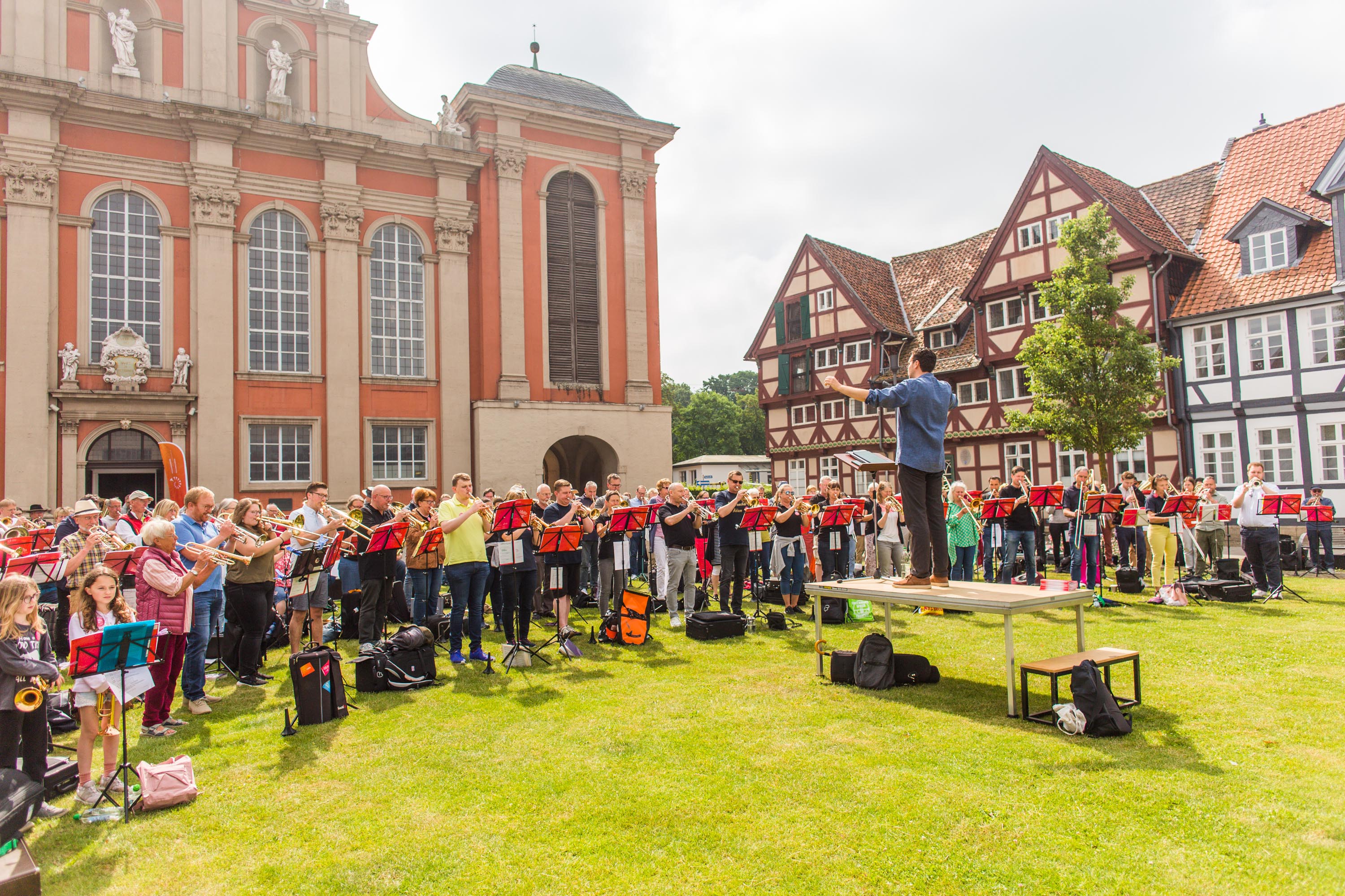 Vom 16. bis 18. Juni kamen über 300 Bläserinnen und Bläser aus den Posaunenchören der Landeskirche Braunschweig in Wolfenbüttel zusammen. Sie feierten gemeinsam unter dem Motto "das gehört zusammen" Landesposaunentag.